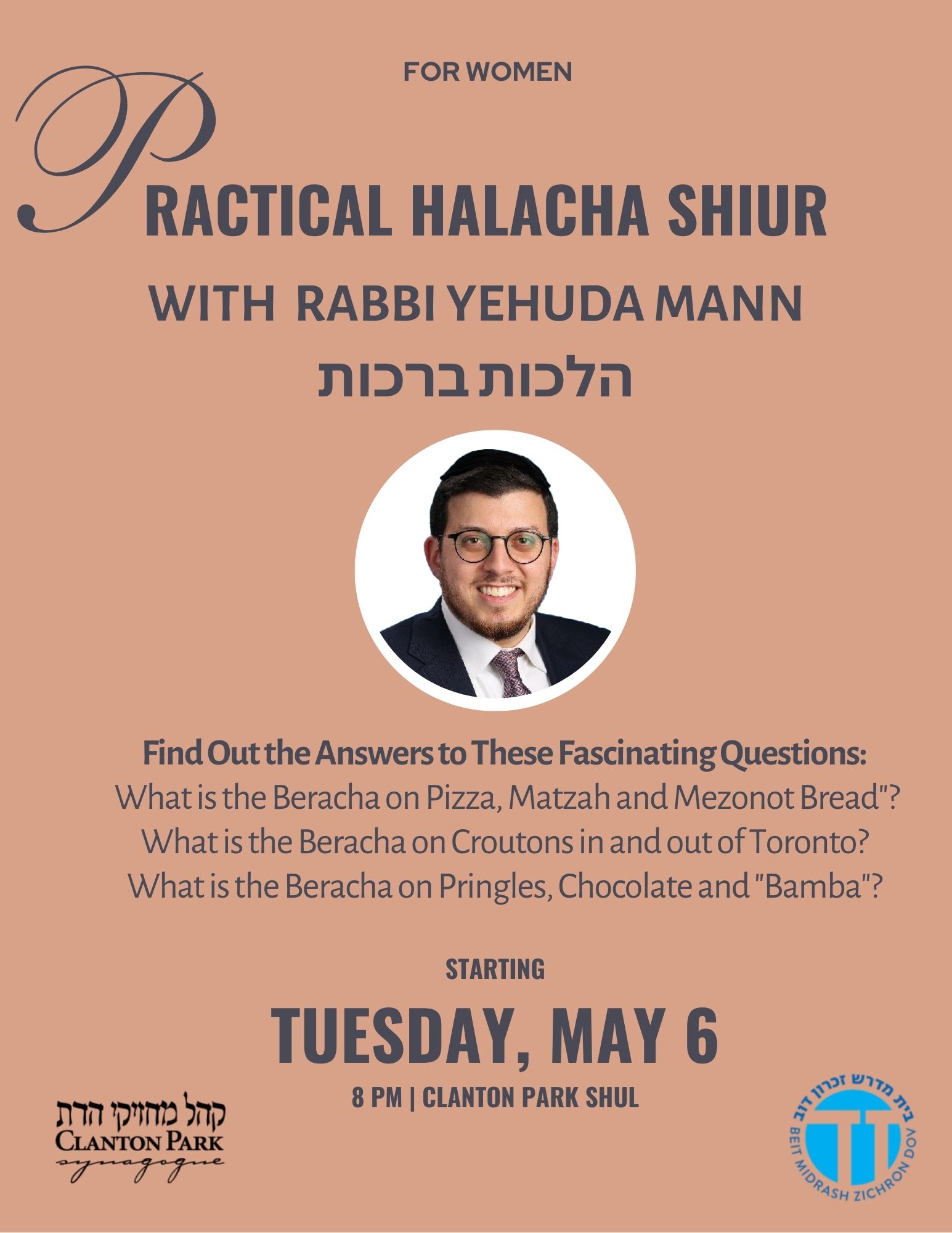 Before coming to Toronto, Rabbi Mann served as Rabbi at the Achdut Yisrael synagogue in Jerusalem and taught in several yeshivot. He loves teaching, and held seven weekly classes the week in his community and beyond, including one on Israel Radio.